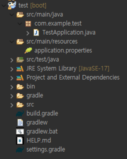 의존성 추가는 나중에 할거라 지금은 모두 제거한상태로 프로젝트를 생성해준다.