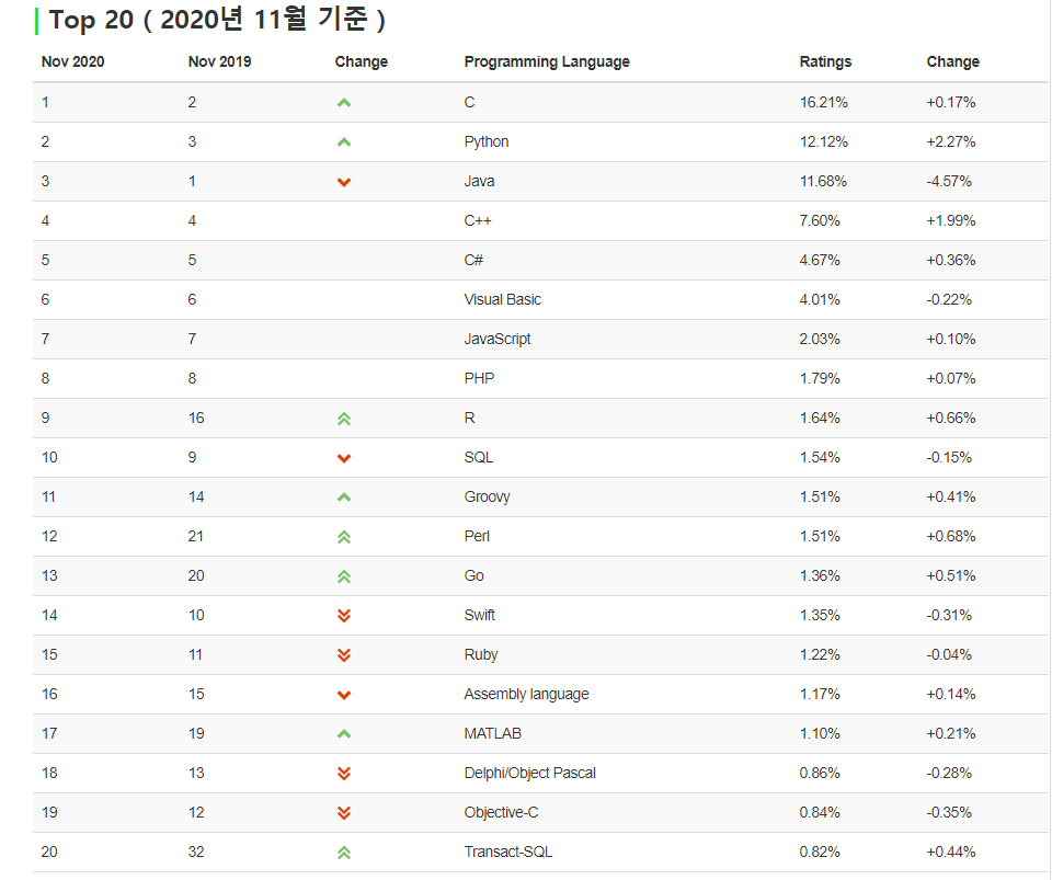 파이썬은 작년에 프로그래밍 언어순위에서 2위를 할만큼 인기가 높다.